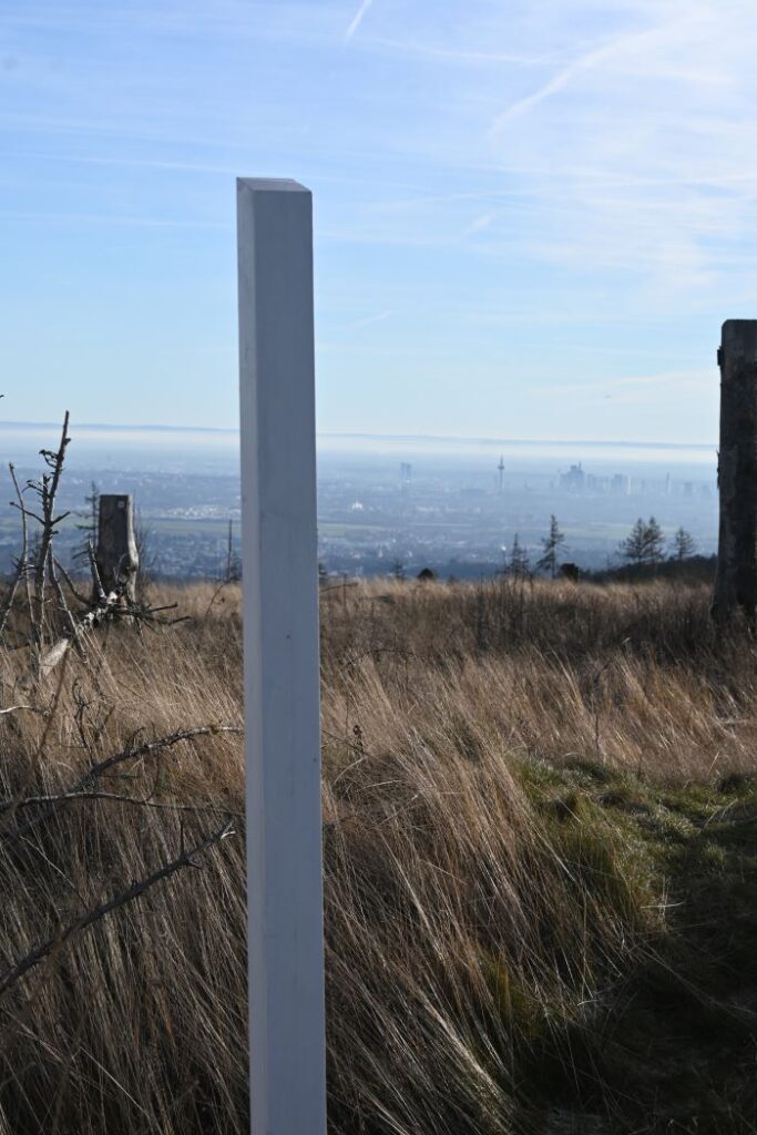 Wieder oben angekommen, laufe ich an einem modernen Wachturm vorbei. Der Richtfunkstation Rosskopf. Ein weiteres Fundament eines Wachturms kreuzt meinen Weg, bevor es hinab geht in Richtung Saalburg.