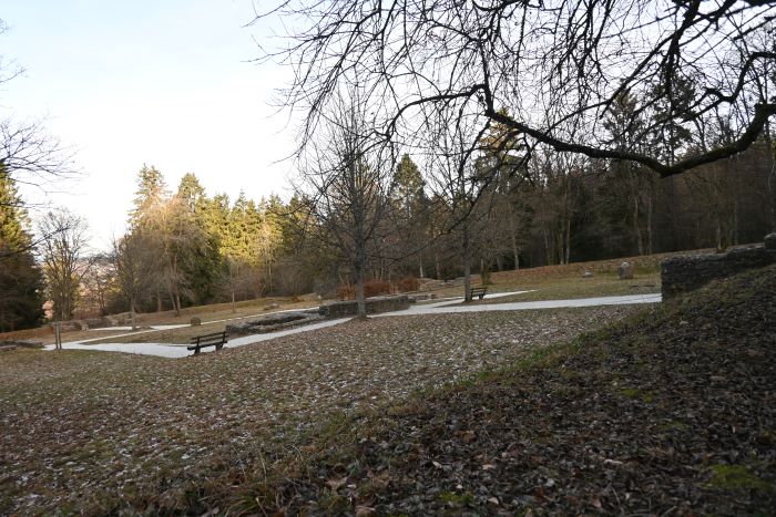 Nach rund drei Kilometern kommt man am Feldbergkastell vorbei. Neben den ganzen Wachtürmen gibt es immer wieder kleinere oder größere Kastelle, an denen kleine bis mittlere Einheiten stationiert waren, die die Grenze nach Norden gesichert haben. Hier waren vermutlich rund 160 Mann stationiert (Quelle: Wikipedia). Hier innerhalb der Mauern mache ich eine kurze Teepause, weil es echt kalt ist.