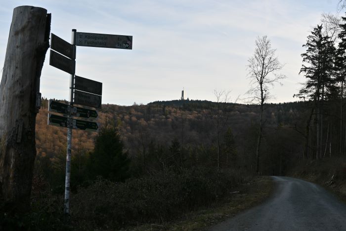 Mein Mann ist so nett und fährt mich erstmal nach Glashütten. Wenn man am Friedhof von Glashütten parkt, geht dort auch gleich der Weg entlang. Also starte ich meinen Weg erst mal grob in Richtung Osten, in Richtung des Feldberges. Gerade hier rund um den Feldberg ist die Auszeichnung des Weges sehr gut. Parallel zu meinem Weg geht auch der WaldGLASWeg (insgesamt 1,7 Kilometer) entlang. Glashütten hat, wie der Name schon andeutet, eine Vergangenheit mit dem Herstellen von Glas. Es gibt auf diesem Weg mehr als eine ehemalige Glashütte. Aber dieser Weg begleitet mich nur rund einen Kilometer, bevor es für mich rechts bergan in Richtung „Rotes Kreuz“ geht. Leider im Moment nicht bewirtschaftet.