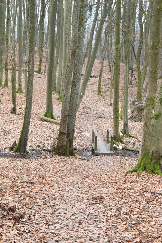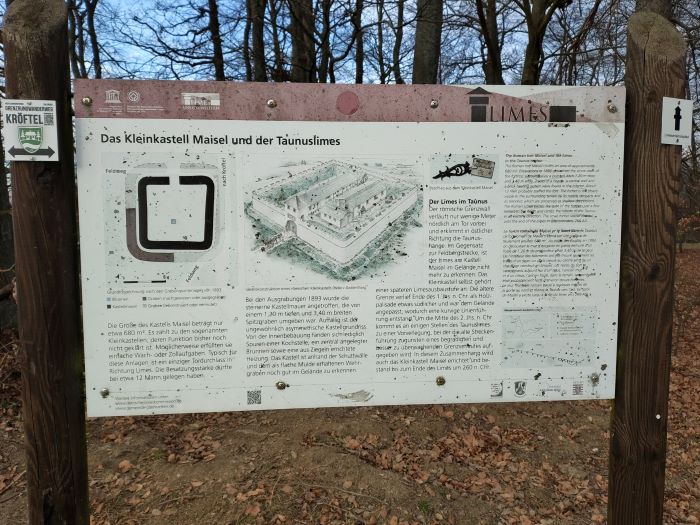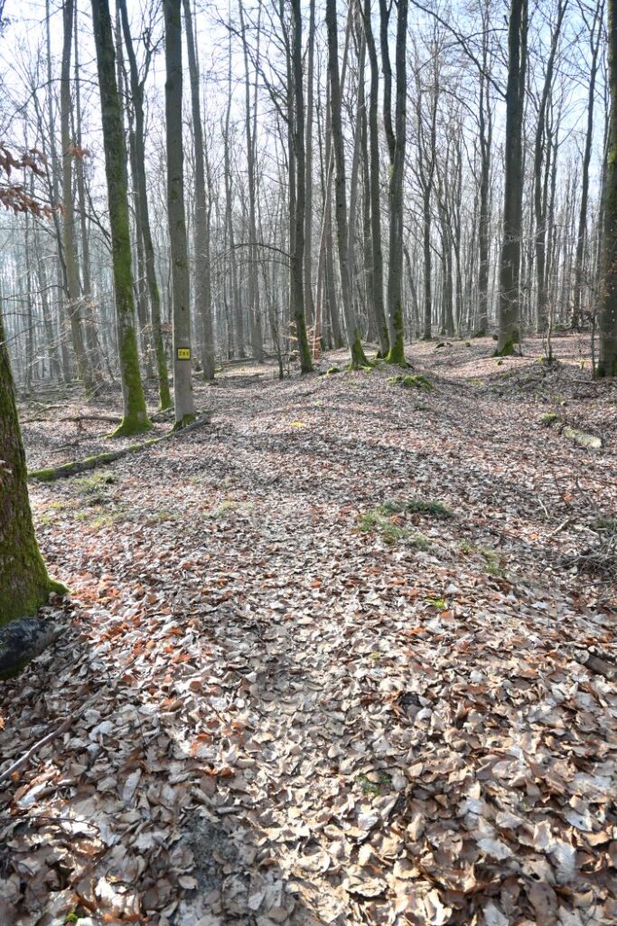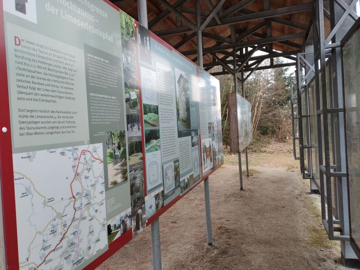 Am Fuß des Turmes findet sich wieder eine Infotafel, dass hier das Kleinkastell Maisel gestanden hat. Die Funktion dieses Kleinkastells ist nicht eindeutig geklärt. Unser Weg führt uns am hier gelegenen Grillplatz vorbei in einen Buchenwald. Der Weg ist ein schöner Waldweg, gut angelegt und die Auszeichnung ist wieder super. Nach rund vier Kilometern ist unsere erste Rast. Die Sonne kommt heraus und wir haben einen schönen Blick auf eine große Lichtung.