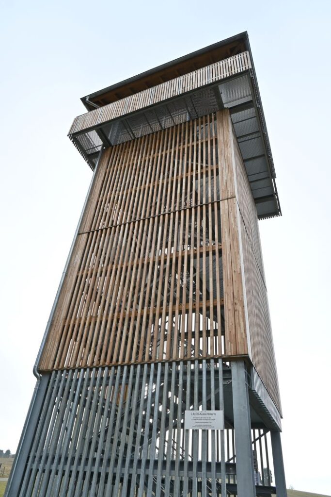 Start war wieder am Friedhof von Glashütten. Ein kurzer Einschwenk in den REWE und noch ein Brötchen geholt (denn mir schmeckt Worscht ohne Brot nicht ganz so gut) und los geht’s erst mal ein Stück zurück zum Informationspavillon und erst mal lesen, was da so alles steht. Dann folgen wir den Schildern über die Straße, schwups, Weg verloren. 😉 Wir sind erst mal innerorts Glashütten gelaufen – entlang des RADWEGES. Der Fußweg wäre einfach geradeaus weitergegangen, aber gut. Irgendwann waren wir dann doch wieder on track und das direkt an einem neu aufgebauten Turm, den man auch besteigen kann. Was wir prompt gemacht haben. Leider ist das Wetter nicht so toll, die Sicht eingeschränkt, aber schön ist es trotzdem.