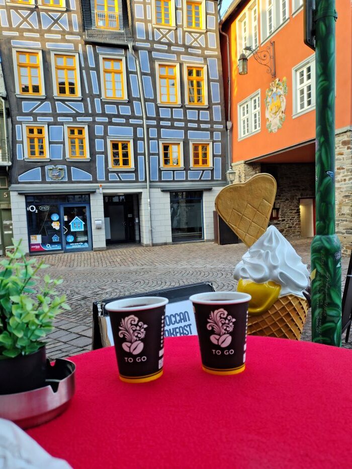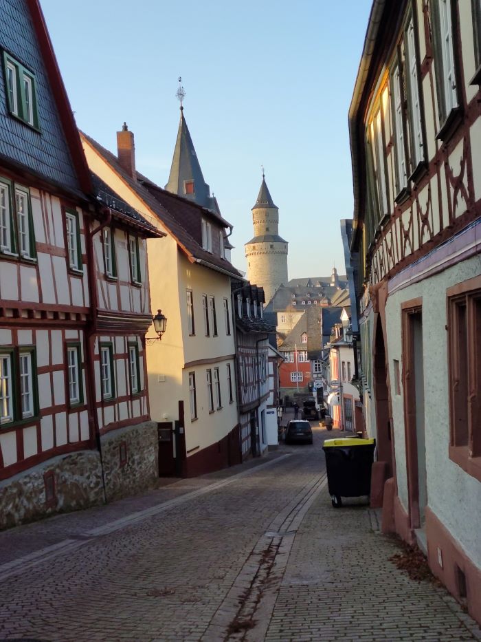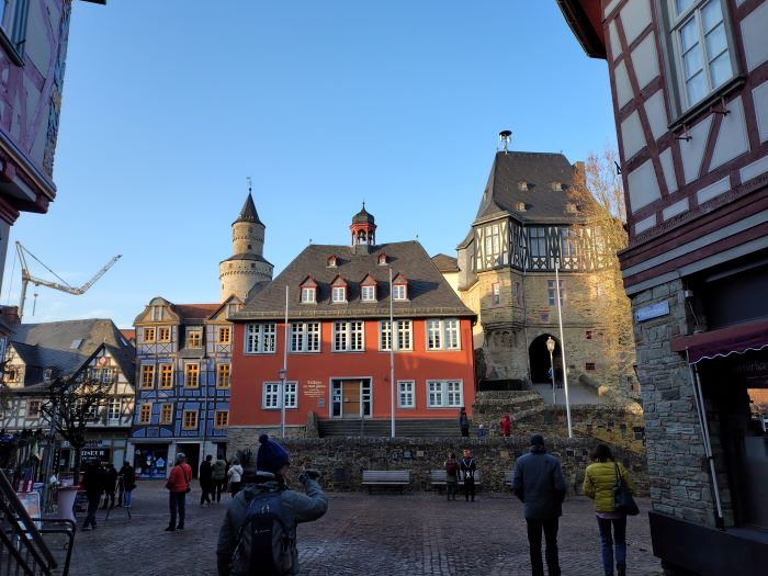 Durch Felder geht es nach Idstein. Ab Idstein haben wir die Möglichkeit entweder mit dem Zug oder mit dem Bus zurück nach Oberursel resp. Bad Homburg zu kommen. Da uns der Bus faktisch vor der Nase wegfährt, das Warten auf den nächsten aber dennoch die zeiteffektivste Variante ist, haben wir noch Zeit, uns die Altstadt von Idstein anzuschauen. Ich glaube, ich war noch nie hier, was ein Frevel ist. Denn es ist eine schnuckelige, kleine Altstadt mit einer tollen Touri-Info und einem sogar noch geöffneten Glühweinstand. Bei den Temperaturen beschließen wir die Tour noch mit einem Glühwein. Danach geht es zum Bus und via Königstein zu unserem jeweiligen Zielort.